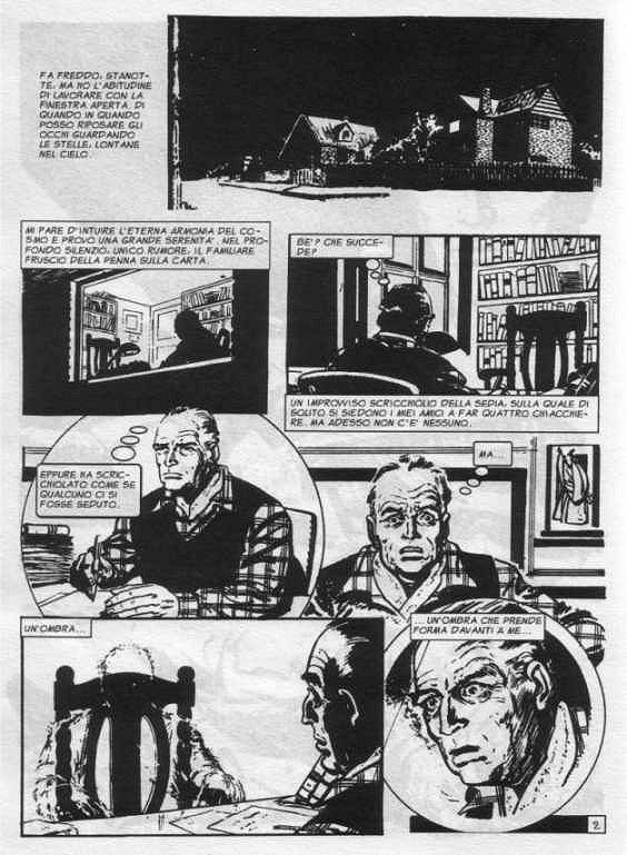 È una notte buia e non tempestosa, ma fredda, e io lavoro con la finestra aperta, per potere guardare le stelle. Mi piace contemplare l'armonia del cosmo quando devo scrivere. All'improvviso un rumore, sulla sedia di fronte a me, dove si siedono i miei amici quando vengono a trovarmi. Ma non c'è nessuno, la sedia è vuota. No. Non è vuota, c'è un'ombra, un'ombra si sta formando sulla sedia. Un uomo appare di fronte a me. Sembra distrutto dalla stanchezza, ma anche da altre sofferenze che non posso immaginare.